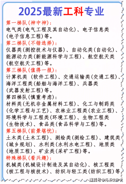 对考生和家长来说,选专业就是赌将来,一步错可能影响十年成长。今天就用大白话拆解这份认证的工科梯队榜单,连系财产趋向和就业,帮你避开坑、选对,每个都干货满满!别再死磕计较机了!麦可思机构最新发布的《中国 2020~2024 届大学结业生培育质量评价》显示,消息平安专业以 7599 元平均月薪连任榜首,微电子科学取工程 7282 元紧随其后,电子科学取手艺 7215 元拿下第三,三大电气电子类专业间接霸榜前三。这个成果看似不测,实则是国度计谋的必然。现正在新能源、半导体都是 “卡脖子” 范畴,政策搀扶力度空前,相关企业抢人都快抢疯了,薪资天然水涨船高。反不雅已经的抢手软件工程,此次只排第五,次要是行业人才趋于饱和,盈利期逐步衰退。分数够的考生沉点冲这三个专业,不只起薪高,将来 5-10 年都是财产黄金期,职业径越走越宽。