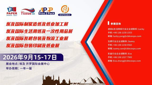 2026年9月15日至17日,第18届埃及Print 2 Pack国际瓦楞包拆及物流工业展将正在埃及开罗国际会展核心昌大启幕。做为北非地域最具影响力的行业嘉会,本届展会将汇聚全球500余家领军企业,展出头具名积冲破20,500平方米,估计吸引超30,000名专业不雅众参加。展会涵盖瓦楞包拆、分析印刷、智能包拆、标签印刷等全财产链手艺,沉点展现环保可降解材料、数字化印刷设备及防伪溯源处理方案。